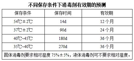 一般來說,隨著溫度的升高,化合物的分解速度加快,因此可以把消毒劑放置在較高溫度下一定時間,然后測定其不同時間含量的變化,再根據阿倫尼烏斯(Arrhenius)原理,推斷出室溫下的分解速度常數及存放期,也就是找出高溫下的貯存時間與室溫下貯存多少時間相當。