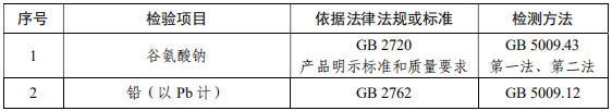 味精抽檢項目: